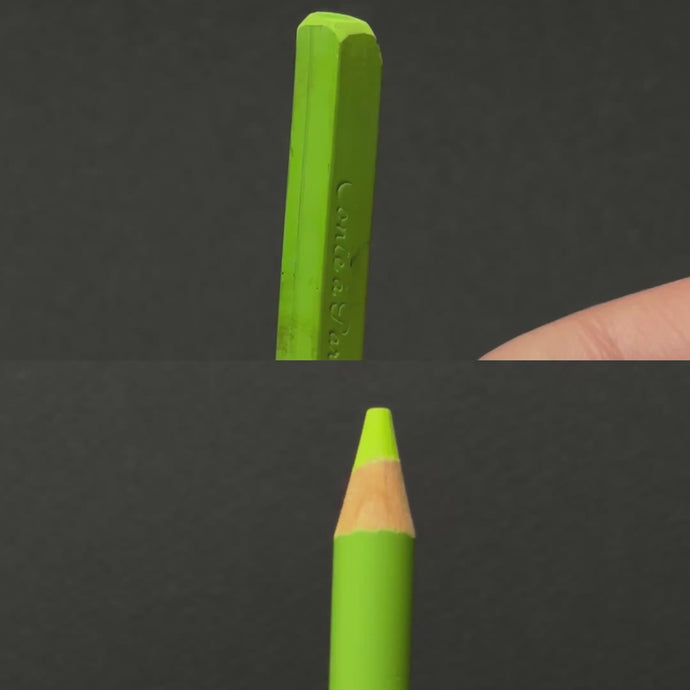 Both are dry pastels. The Pastel Square and the Conté à Paris Pastel Pencil share the same base in terms of paste, pigment, and binder. While the color is similar in intensity and brightness, the format is different: one comes as a pencil with a wooden casing, and the other as a stick, a pure pastel without a casing. The pencil core is fired slightly longer to make it more resistant to the casing process, giving it a noticeably firmer hardness than the Pastel Square.
