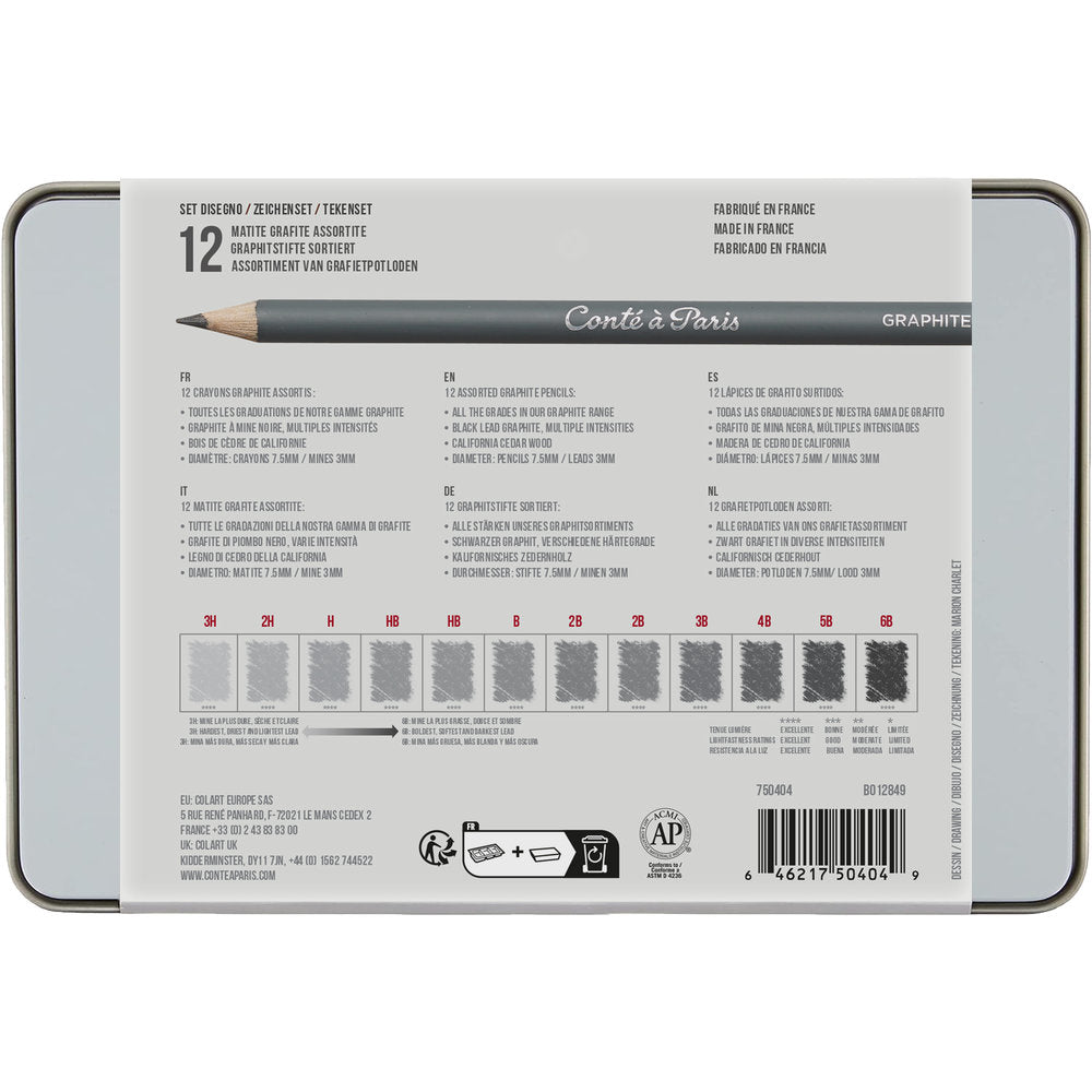 This metal box contains the full range of graphite pencils, from 3H to 6B: